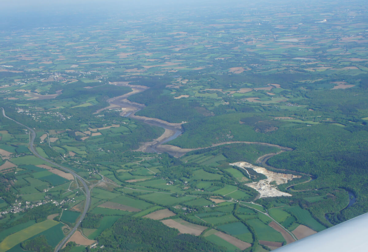 Après un changement de pilote, le retour nous fait survoler le lac de Guerledan à sec !